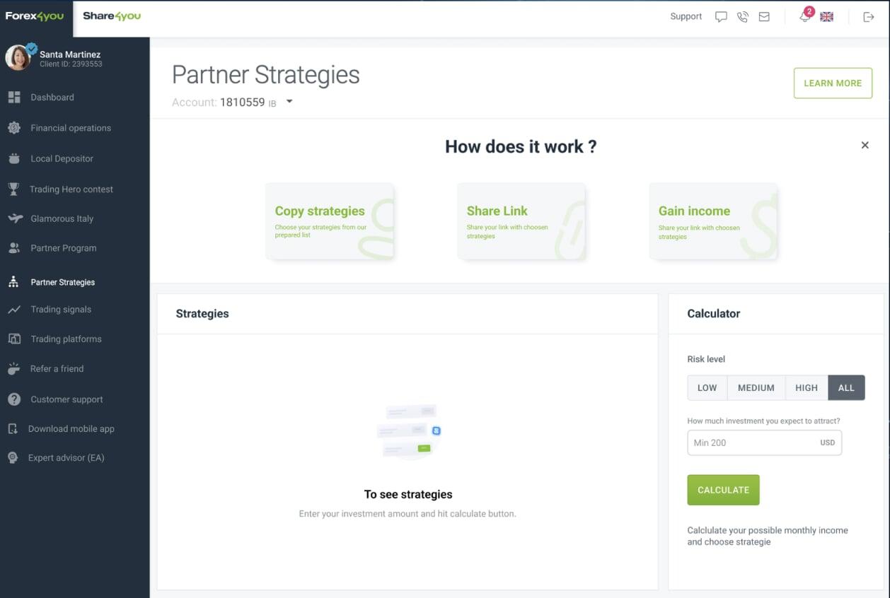 This program integrates expertise from Share4you, our proprietary copy trading platform, and expert advisor (EA) providers, to offer a comprehensive Strategies Library.