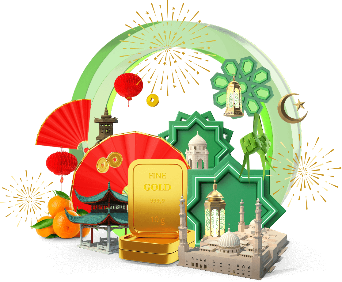 Rayakan Imlek dan Hari Raya dengan hadiah emas.